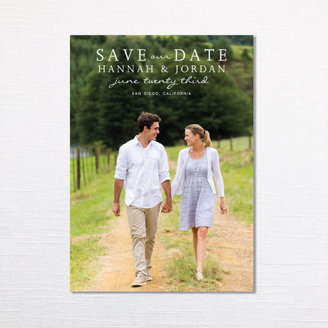 • Photography: Select your save the date design before your engagement photos, and share it with your photographer. This ensures your photos are framed and oriented perfectly for your card.