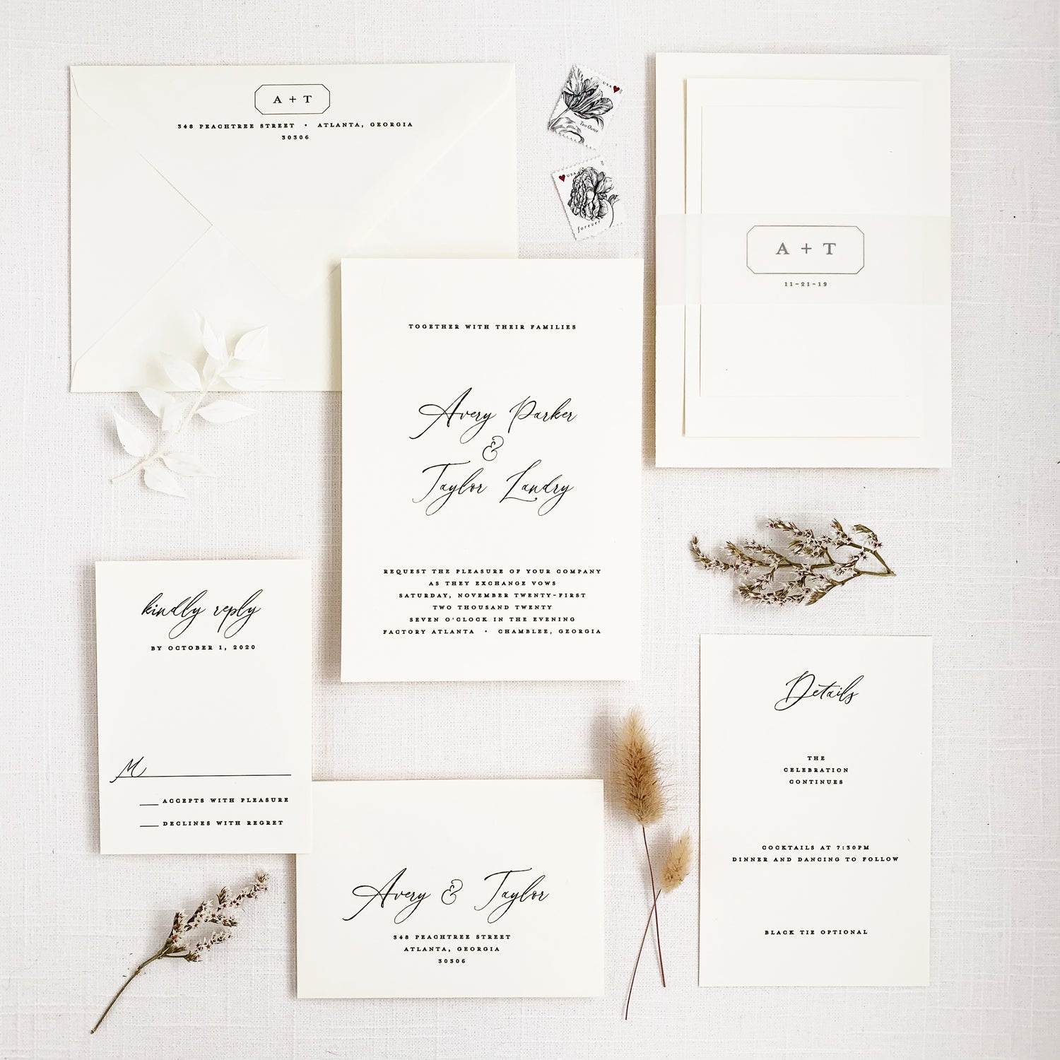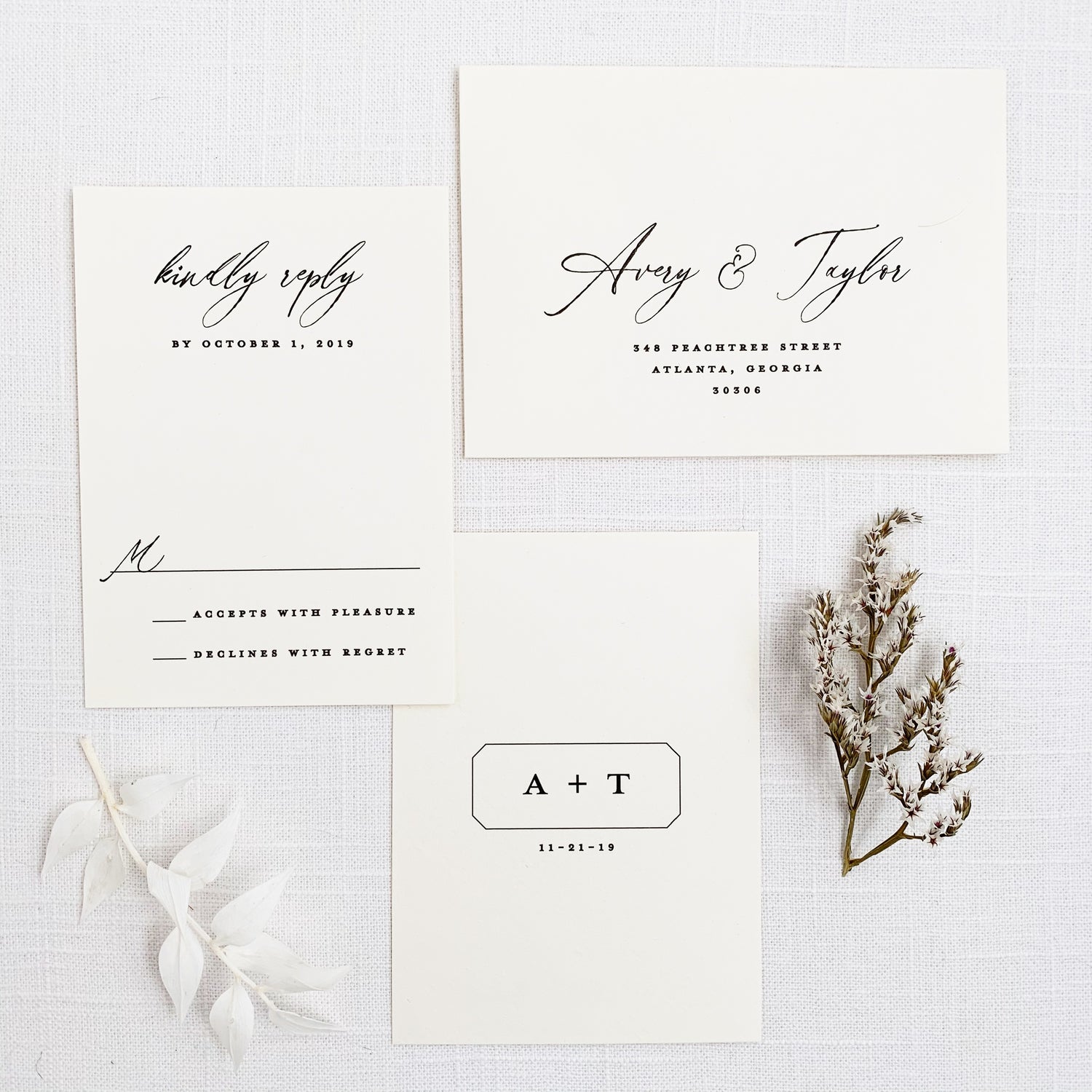 Basic pieces of an invitation set.